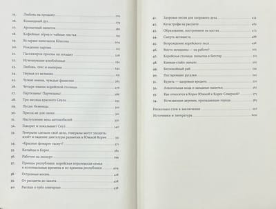 Grāmata sastāv no esejām, no kurām katra ir veltīta noteiktam korejiešu ikdienas dzīves aspektam. Šo trīs gadsimtu laikā neliela karaliste Eirāzijas tālākajā malā nodibināja pirmos kontaktus ar Rietumiem, kļuva par Japānas koloniju, pēc tam atguva neatkarību un, visbeidzot, pārdzīvojusi Dienvidu un Ziemeļu dalījumu un pārcietusi asiņainas pilsoņu nesaskaņas gadus, kļuva par vienu no bagātākajām un unikālākajām valstīm pasaulē.