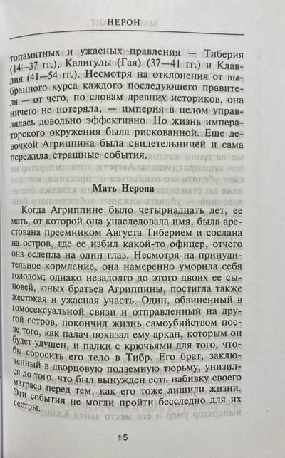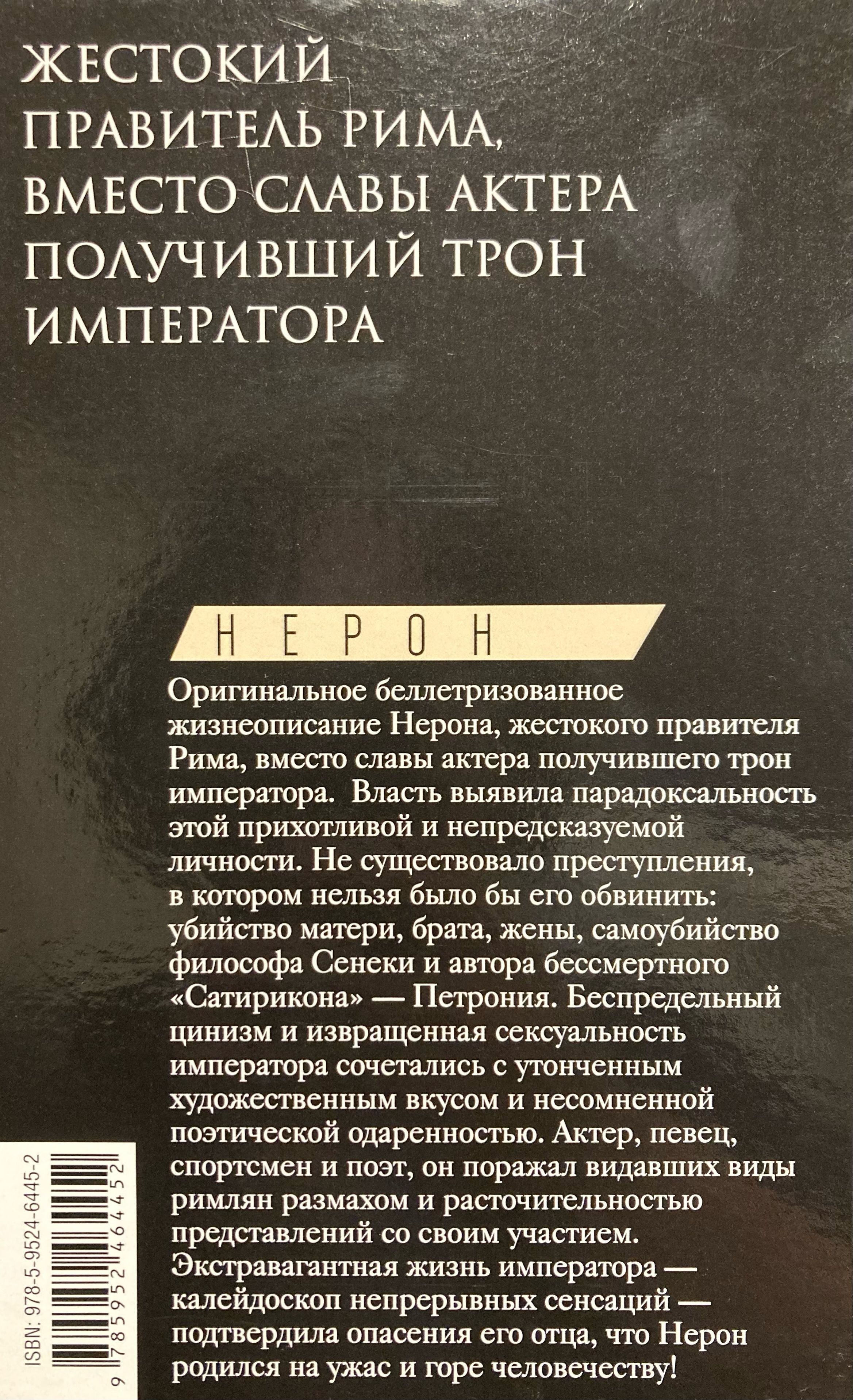 Maikls Grants piedāvā oriģinālu Nerona dzīves versiju, kas veidota no savstarpēji izslēdzošām pretrunām. Grants smeļas iedvesmu ne tikai no izcilu seno vēsturnieku liecībām, bet arī no mūsdienu zinātnes sasniegumiem. Grāmata atjauno politikas, ekonomikas un greznā dzīvesveida realitāti Romas impērijā.