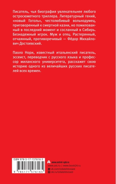 Rakstnieks, kura biogrāfija ir aizraujošāka par jebkuru trilleri. Literārais ģēnijs, "jaunais Gogolis", ambiciozs brīvdomātājs, notiesāts uz nāvi, bet pēdējā brīdī apžēlots un izsūtīts uz Sibīriju. Bezcerīgs spēlmanis. Vīrs un tēvs. Apjucis, izmisis, pretrunīgs - Fjodors Mihailovičs Dostojevskis.