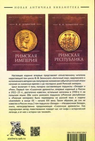 Šajā izdevumā krievu lasītājiem pirmo reizi tiek piedāvāts trūkstošais F. F. Zelinska cikla "Senā pasaule" sējums, ko autors iecerējis un īstenojis kā populāru senās ēras notikumu aprakstu, sākot no mītiskajiem laikiem līdz Romas impērijas pēdējām dienām.