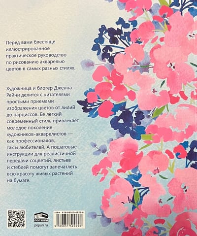 Māksliniece un blogere Jenna Rainey dalās vienkāršās tehnikās, kā attēlot ziedus, sākot no lilijām līdz narcisēm. Viņas vieglais, modernais stils uzrunā jaunākās paaudzes akvareļgleznotājus - gan profesionāļus, gan amatierus. Soli pa solim sniegti norādījumi, kā reālistiski atveidot ziedkopas, lapas un stublājus, lai uz papīra iemūžinātu dzīvo augu skaistumu.