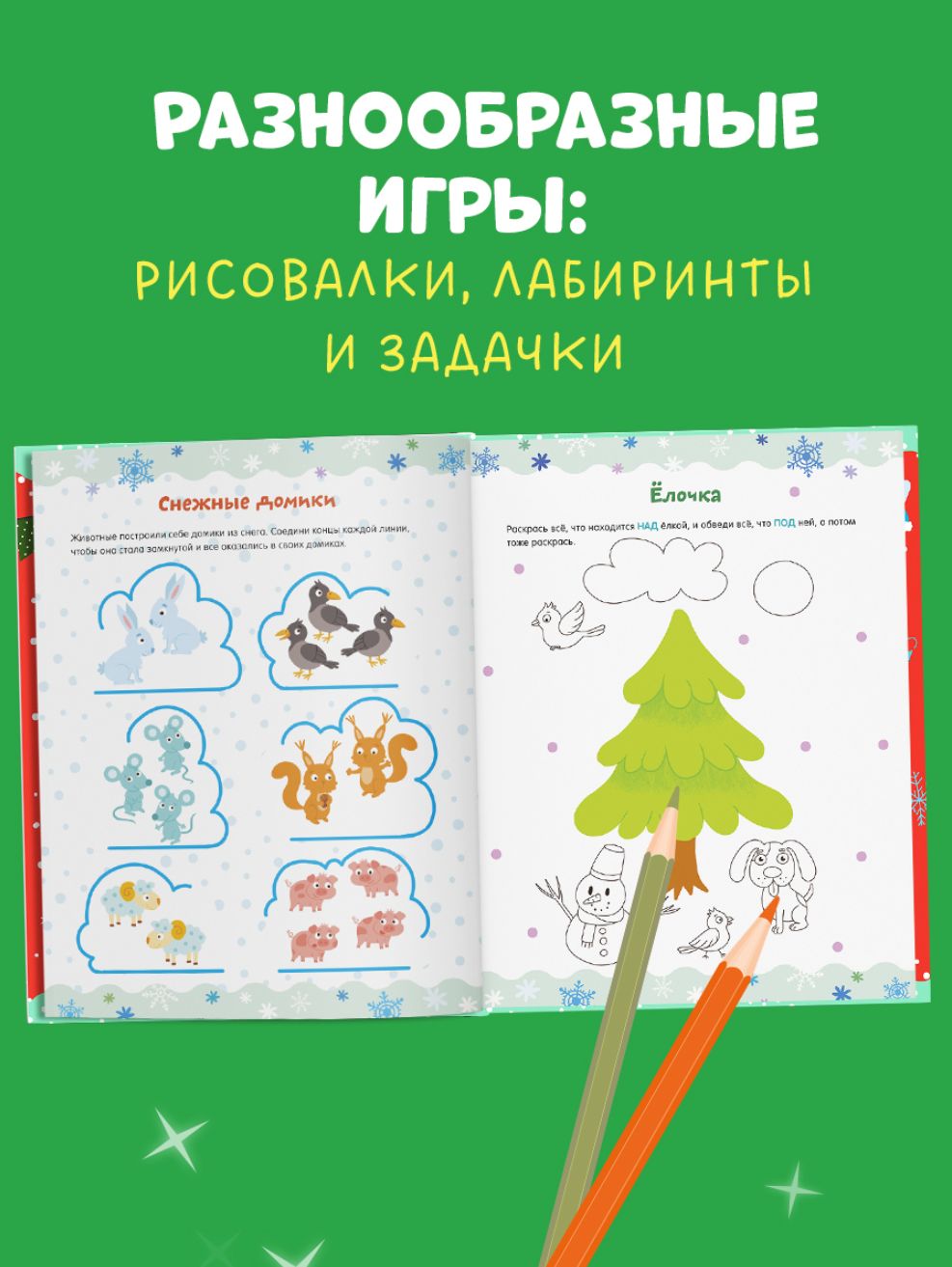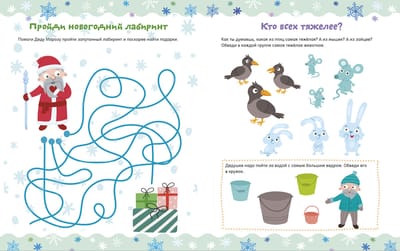 Košās lappusēs bērni atradīs dažādus uzdevumus, kas pārbauda loģiku, uzmanību un intelektu, kā arī jautras zīmēšanas spēles, labirintus un mīklas. Mazie satiks burvīgus tēlus — vecmāmiņu Zinu un viņas mazmeitu Mašu —, kas palīdzēs cālītim atrast ceļu uz ligzdu, skaitīs svilpes, uzzīmēs trūkstošās sastāvdaļas gardam pīrāgam un skaitīs sniegpārslas. Ar maģisku ziemas atmosfēru, krāsainām ilustrācijām, asprātīgām mīklām un izglītojošiem vingrinājumiem gan meitenēm, gan zēniem noteikti būs jautri!