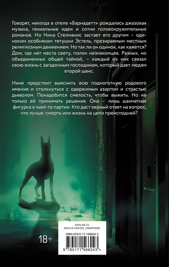 Viņi saka, ka reiz viesnīcā "Barnadete" dzimusi džeza mūzika, spožas idejas un simtiem reibinošu romānu. Bet Ņina Stelmanis viņu atrod citādāk - vientuļā tantes Estelles savrupmāja, kuru nicina vietējā reliģiskā kustība. Bet vai viņš ir tik vientuļš, kā šķiet? Māja bez gaismas ir svešinieku pilna. Atšķirīgs, bet ko vieno kopīgs noslēpums, katrs no tiem savienoja savu dzīvi ar noslēpumainu kungu, kurš dod cilvēkiem otru iespēju. Nina ir uzzināt visu fonu ģimenes īpašumu un sejas velns apvalda uztraukums un kaislība. Lai izdzīvotu, ir vajadzīga drosme. Bet lēmumus pieņem ne tikai viņa. Viņa ir tikai šaha skaņdarbs kāda spēlē. Kurš sniegs pareizo atbildi uz jautājumu, kas ir labāks: nāve vai dzīve elles ķēdē?