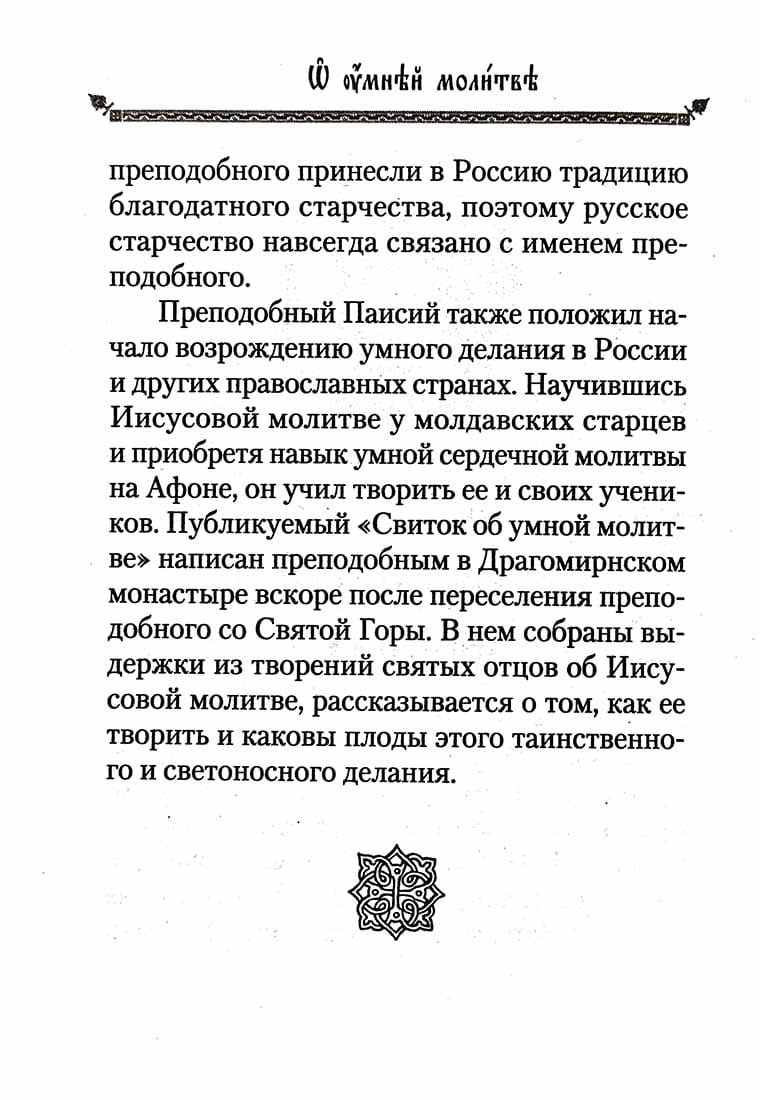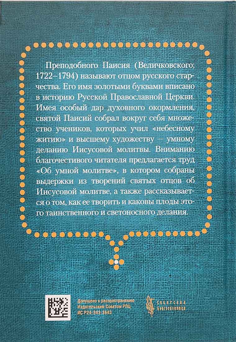 Pateicīgajam lasītājam tiek piedāvāts "krievu vecāko tēva" - mūka Paisija (Veļičkovska) - darbs "Par saprātīgu lūgšanu". Tajā apkopoti fragmenti no svēto tēvu darbiem par Jēzus lūgšanu, stāstīts, kā to veikt un kādi ir šī noslēpumainā un gaismu nesošā darba augļi.