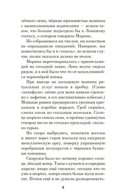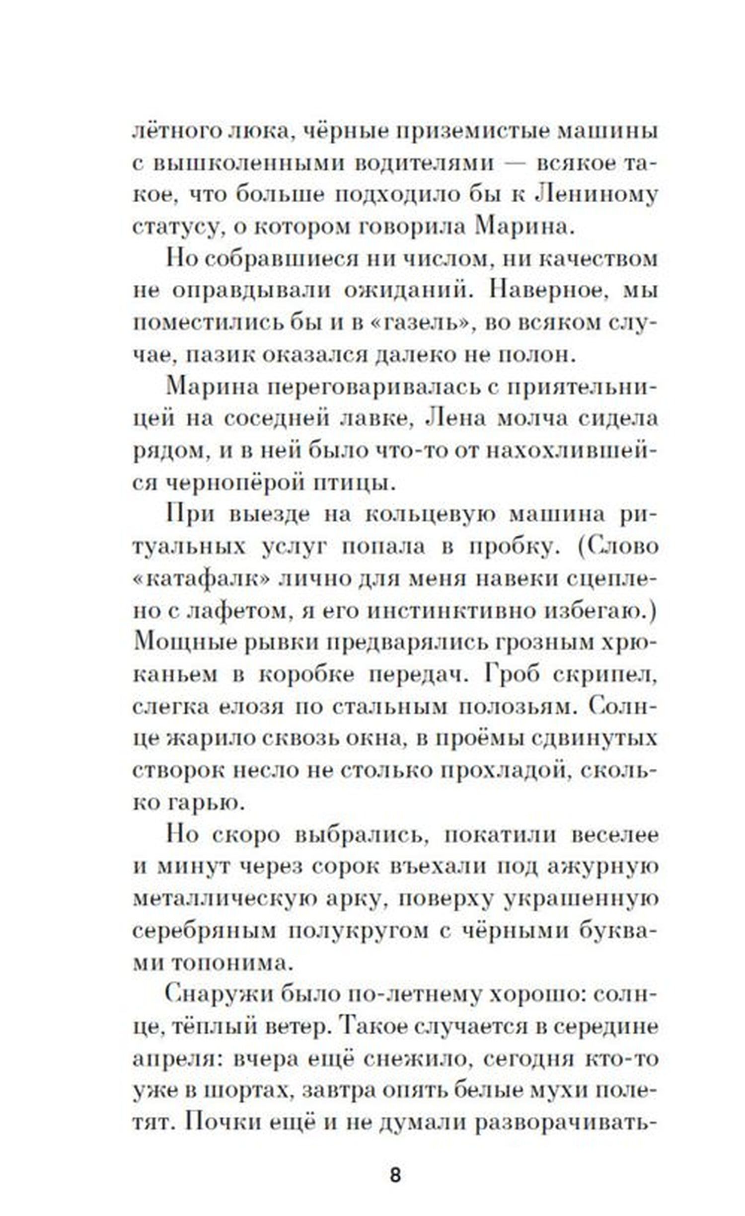 Kādu dienu galvenā varone, rakstniece, savā dzīvoklī saņem telefona zvanu: veca paziņa aicina viņu uz sava znota bērēm. Veiksmīgs uzņēmējs pēkšņi nomira, neatstājot neko savai jaunajai sievai. Notikušais rakstnieka atmiņā atsauc notikumu virkni: kaislīgs romāns ar mēreni slavenā padomju režisora Vasilija Kondrašova meitu Liliānu, braucieni uz viņu dāmu, pastaigas, kuru laikā viņš palīdzēja Kondrašovam sagatavoties memuāru rakstīšanai, un, visbeidzot, sirmā vīra pēkšņā nāve. Rakstnieces un Liliānas idilliskās attiecības pārtrauc šķietami veiksmīgs uzņēmējs Aleksandrs, taču tikai pirmajā mirklī... Šim stāstam ir vairākas sižeta līnijas, kurās ir gan trillera, gan piedzīvojumu romāna, gan ģimenes sāgas elementi. Mīklu romāns, kas maldina lasītāja cerības lapu pēc lapas.