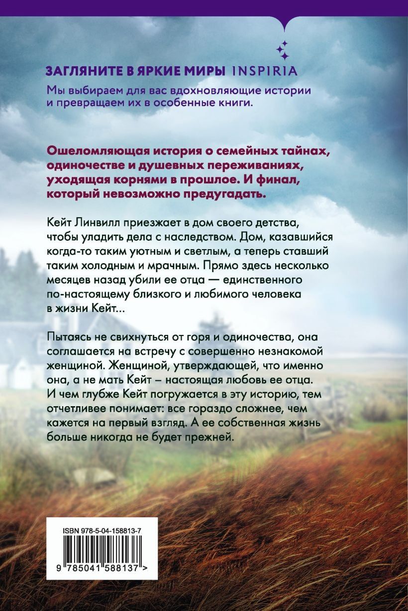 Keita Linvila ierodas savās bērnības mājās, lai nokārtotu mantojuma lietas. Māja, kas kādreiz šķita tik mājīga un gaiša, tagad ir kļuvusi tik auksta un drūma. Tieši šeit, pirms dažiem mēnešiem, tika nogalināts viņas tēvs - vienīgais patiesi tuvs un mīļots cilvēks Keitas dzīvē... Cenšoties nekrist prātā no bēdām un vientulības, viņa piekrīt satikt pilnīgi svešu cilvēku. Sievieti, kura apgalvo, ka viņa, nevis Keitas māte, ir viņas tēva patiesā mīlestība. Un, jo dziļāk Keita iedziļinās šajā stāstā, jo skaidrāk viņa saprot: viss ir daudz sarežģītāk, nekā šķiet no pirmā acu uzmetiena. Un viņas pašas dzīve nekad vairs nebūs tāda pati.