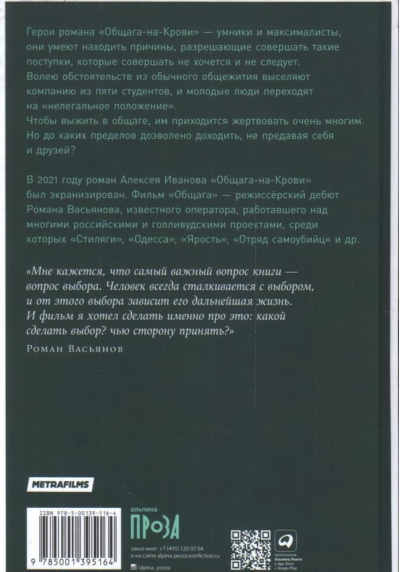 Alekseja Ivanova romāna "Kopmītnes uz asinīm" varoņi ir gudri un perfekcionisti, un viņiem piemīt talants atrast attaisnojumus, kas ļauj viņiem darīt lietas, ko viņi nevēlas un nevajadzētu darīt. Apstākļu spiesti piecu studentu grupa tiek izlikta no savas parastās kopmītnes, un jaunieši dodas pagrīdē. Lai izdzīvotu kopmītnē, viņiem ir daudz jāupurē. Bet cik tālu viņi var iet, nenododot sevi un savus draugus?