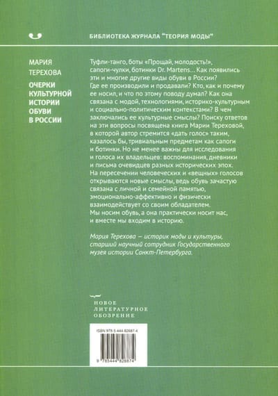 Tango kurpes, “Ardievu, jaunība!” zābaki, zeķu zābaki, Dr. Martens… Kā šie un daudzi citi apavu veidi parādījās Krievijā? Kur tie tika ražoti un pārdoti? Kas tos valkāja, kā un kāpēc, un ko viņi par to domāja? Kā tas ir saistīts ar modi, tehnoloģijām, vēsturisko, kultūras un sociālpolitisko kontekstu? Kādas bija to kultūras nozīmes? Marijas Terehovas grāmata ir veltīta atbilžu meklēšanai uz šiem jautājumiem, kurā autore cenšas “dot balsi” tik šķietami triviāliem priekšmetiem kā zābaki un kurpes. Taču ne mazāk svarīgas pētījumā ir to īpašnieku balsis: memuāri, dienasgrāmatas un aculiecinieku vēstules no dažādiem vēstures laikmetiem. Cilvēcisko un “materiālo” balsu krustpunktā atklājas jaunas nozīmes, jo apavi bieži vien ir saistīti ar personīgo un ģimenes atmiņu, emocionāli, afektīvi un fiziski mijiedarbojas ar savu īpašnieku. Mēs valkājam apavus, un tie praktiski valkā mūs, un kopā mēs ieejam vēsturē. Marija Terehova ir modes un kultūras vēsturniece, Sanktpēterburgas Valsts vēstures muzeja vecākā pētniece.