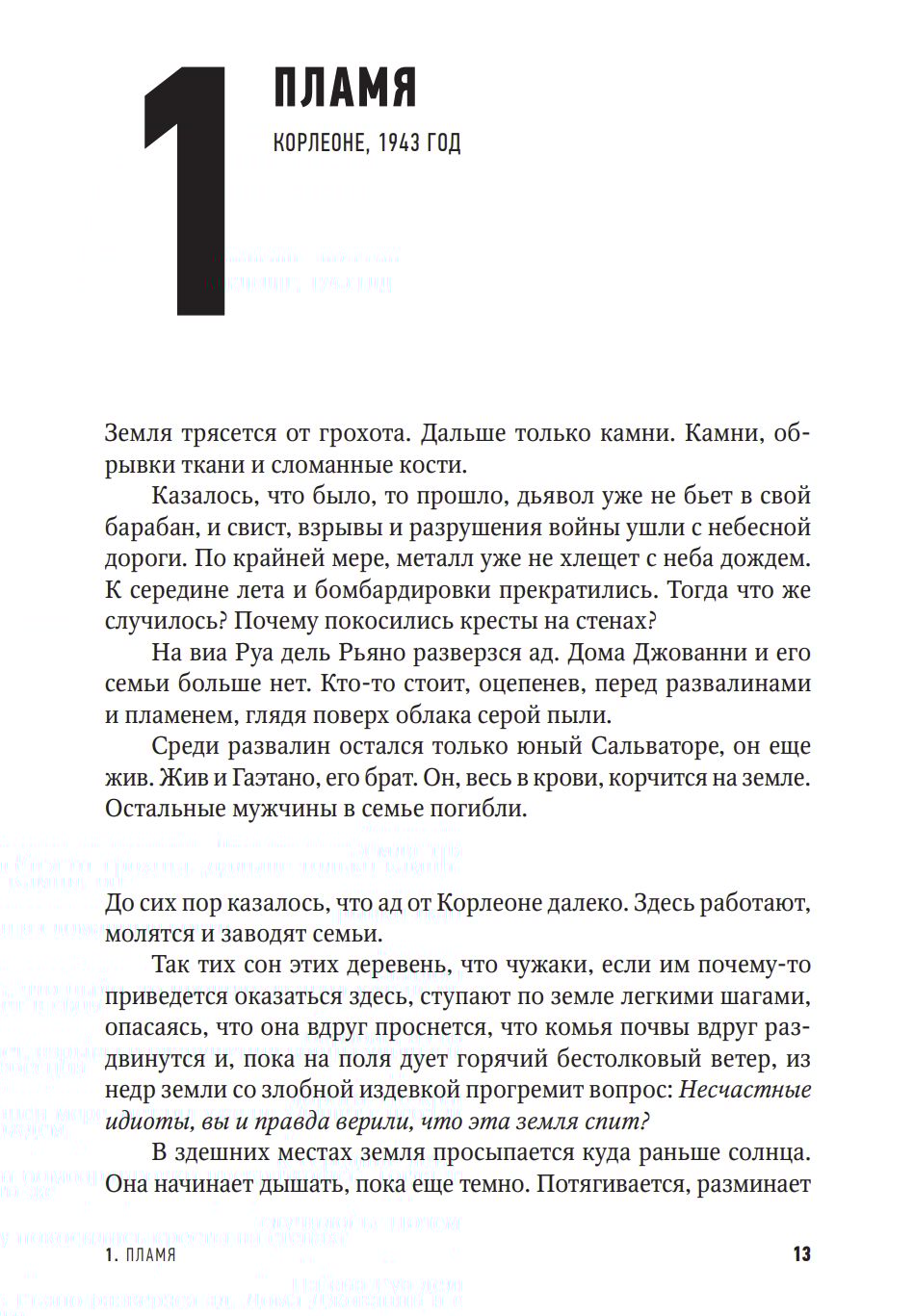 Sprādziens pāršķeļ Korleones lauku klusumu. Jaunais Toto Riina vēro, kā viņa ģimene iet bojā. Sprādziena dārdi iezīmē laikmeta sākumu. Cilvēki čukst jaunā spēka nosaukumu: mafija, Cosa Nostra ("Mūsu lieta" sicīliešu dialektā). Ciema iedzīvotāji sāk apspiest galvaspilsētas noziedzīgo pasauli, un drīz vien visu Sicīliju pārņem brutāla terora bailes. Slepkavības seko viena pēc otras, pilsētās un ciematos, piekrastē un pašā salas centrā. Mafija piesaka karu ne tikai saviem konkurentiem, bet arī varas iestādēm un galvenokārt tiem, kas cenšas ar to cīnīties. Karabinieri, policisti, prokurori un miertiesneši (izmeklēšanas tiesneši) nonāk nežēlīgo redzeslokā tiem, kuriem slepkavības ir ikdiena. Taču sprādziens rada arī citu spēku: drosmi un neatlaidību, ko iemieso Džovanni Falkone un viņa līdzgaitnieki. Sešdesmitajos gados Sicīlijā sākās sīvs konflikts starp likumu un noziedzību, kas vēlāk pārņēma visu Itāliju. Stāstu par izcilo mafijas apkarošanas cīnītāju Džovanni Falkoni, īstu Itālijas varoni, stāsta viens no Itālijas izcilākajiem rakstniekiem, starptautiskā bestsellera "Gomora" autors.