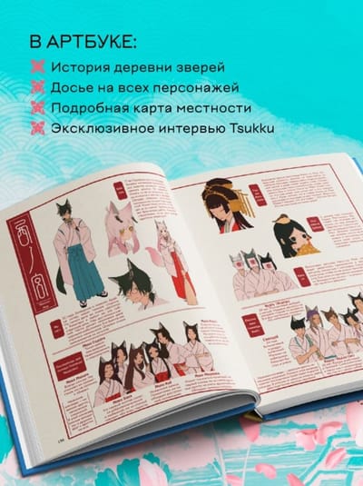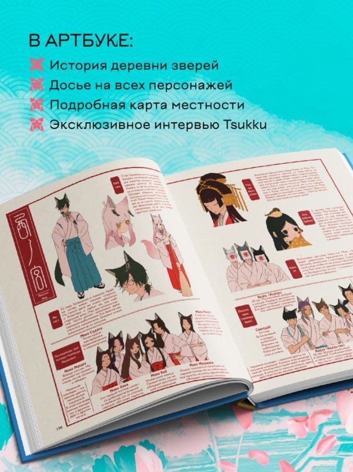 Savukārt mākslas grāmatas otrajā daļā jums būs iespēja ielūkoties aizkulisēs, japāņu ilustratora Cukku radošajā darbnīcā: uzzināt, kā šis stāsts radās, no kādiem mītiem autors smēlies iedvesmu, kā arī labāk iepazīt savus iecienītākos tēlus.