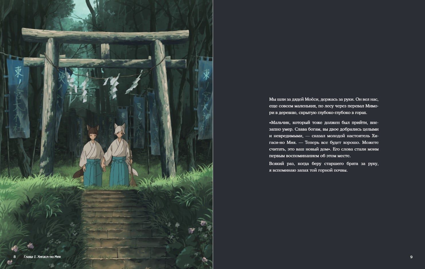 Atveriet šo grāmatu, ieskatieties zem vāka un... nokļūstiet tradicionālās japāņu mitoloģijas noslēpumainajā pasaulē. Ar šo mākslas grāmatu jūs apmaldīsieties Japānas meža dzīlēs kopā ar noslēpumainām radībām, kas apdzīvo šo pasauli: dievībām un dēmoniem, jokajiem un jurejiem, pa pusei cilvēkiem un pa pusei dzīvniekiem... Bet tas nav galvenais: jūsu priekšā pavērsies vesels stāsts, aizkustinošs, dažreiz rāpojošs, bet vienmēr sirdi plosoši spilgts. Tajā ir runa par labo un ļauno, draudzības un biedriskuma vērtību, nežēlību un atpestīšanas iespēju.