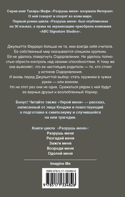 Džuljeta Ferrāra vairs nav tā, par kādu viņa sevi vienmēr uzskatīja. Viņas pašas pasaule izrādās pārāk trausla. Viņai nav izdevies uzvarēt labsajūtu. Viņa nav spējusi pilnībā kontrolēt savas spējas. Turklāt viņa atklāj, ka viņas īstie vecāki ir tie, kas aizsāka Wellness. Džuljeta atkal saskaras ar izvēli - kļūt par ieroci nepareizās rokās vai par karotāju. Taču šoreiz viņa nav viena. Viņai līdzās cīnīsies viņas uzticamie draugi un mīļotais Vorners. Grāmatā iekļauts arī "Paslēp mani" - Kendži vārdā sarakstīts īss stāsts par gatavošanos simpozijam un tajā notikušo traģēdiju.