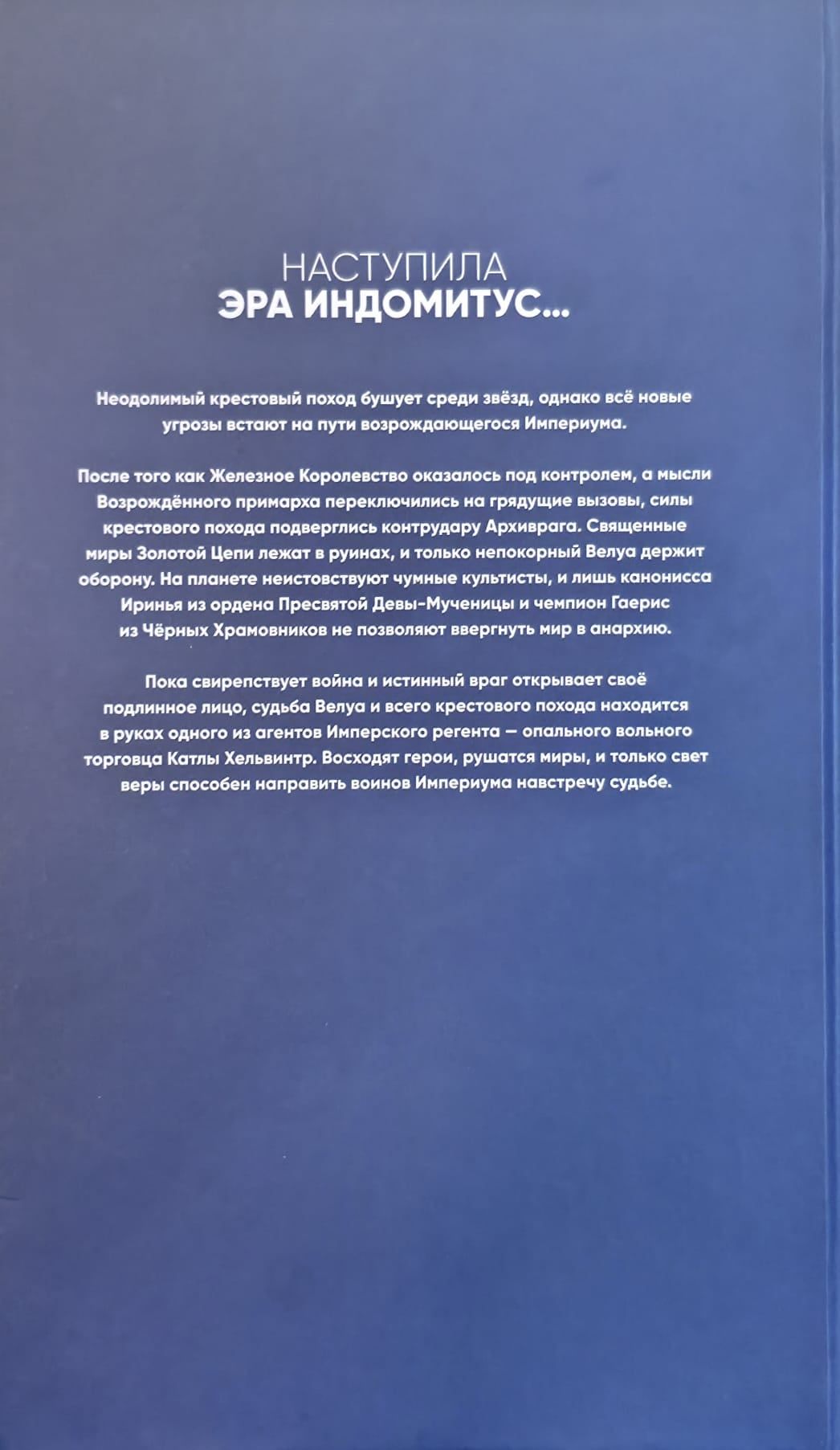 Kad Dzelzs Karaliste ir kontrolēta un Atdzimušā Primarha domas pievēršas gaidāmajiem izaicinājumiem, Krusta kara spēki saskaras ar pretuzbrukumu no Galvenā Ienaidnieka. Zelta Ķēdes svētās pasaules ir drupās, un tikai nepaklausīgais Velua tur fronti. Pa planētu plosās mēra kultisti, un tikai kanoniķe Irinja no Mūsu Mocekļu Dāmas ordeņa un Melno Templiešu čempione Gaerisa neļauj pasaulei iegrimt anarhijā.
