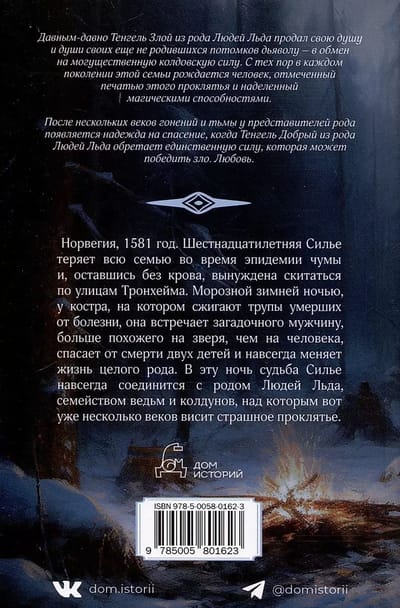 Norvēģija, 1581. gads. Sešpadsmit gadus vecā Silje mēra laikā zaudē visu ģimeni un ir spiesta klaiņot pa Tronheimas ielām kā bezpajumtniece. Kādā salā ziemas naktī pie ugunskura, kur sadedzina no slimības mirušo līķus, viņa satiek noslēpumainu vīrieti, kurš vairāk atgādina zvēru nekā cilvēku, izglābj divus bērnus no nāves un uz visiem laikiem izmaina visas ģimenes dzīvi. Šajā naktī Silje liktenis uz visiem laikiem būs saistīts ar Ledus cilvēkiem - raganu un burvju dzimtu, kas gadsimtiem ilgi ir bijusi pakļauta briesmīgam lāstam.