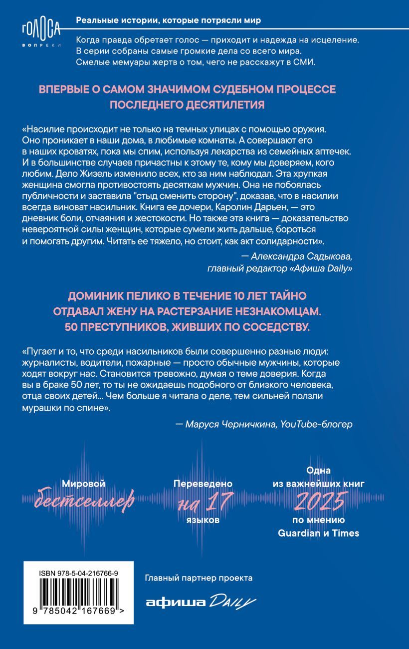 Atzīšanās no Žizelas Peliko meitas, sievietes, kuras dzīve pārvērtās par traģēdiju, ko vēroja visa pasaule. Žizelas vīrs desmit gadus slepeni pakļāva viņu vīriešu žēlastībai. Piecdesmit noziedznieki, kas dzīvoja apkārtnē. Cienījami ģimenes vīrieši, starp kuriem bija ārsts, ugunsdzēsējs, skolotājs, maiznieks, no kura Žizela pirka svaigu maizi...