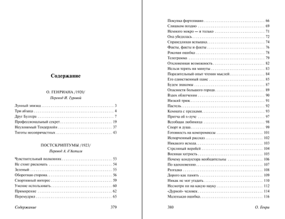 Šajā grāmatā ir iekļauti krājumi "O. Henriana", "Pēcraksti", kā arī atlasīti stāsti no "O. Henrijs atkal" sērijas un citi.
