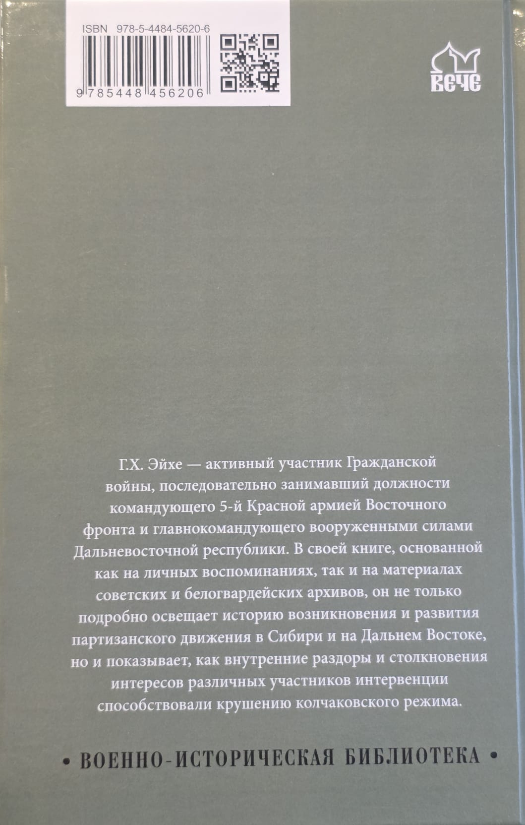 G. K. Eihe bija aktīvs Pilsoņu kara dalībnieks, secīgi ieņemot 5. Sarkanās armijas komandiera amatus Austrumu frontē un Tālo Austrumu Republikas bruņoto spēku virspavēlnieka amatus. Savā grāmatā, kas balstīta gan uz personīgajām atmiņām, gan materiāliem no padomju un Baltās gvardes arhīviem, viņš ne tikai sniedz detalizētu pārskatu par partizānu kustības rašanos un attīstību Sibīrijā un Tālajos Austrumos, bet arī parāda, kā iekšējās nesaskaņas un interešu sadursmes starp dažādiem intervences dalībniekiem veicināja Kolčaka režīma sabrukumu.
