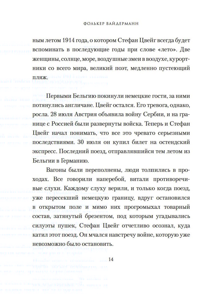 Biogrāfisks romāns "Ostende." 1936: Draudzības un bēdu vasara, 2014. Ostende ir lielisks piejūras kūrorts, kur 1936. gadā pulcējās rakstnieki, žurnālisti, izdevēji, dzejnieki – Stefans Zveigs un Jozefs Rots, Artūrs Koestlers un Ernsts Tollers – visi tie, kuriem nav vietas Nacionālsociālistiskajā Vācijā. Saule, jūra, dzērieni. Tas varētu būt tikai atvaļinājums ar draugiem. Ja ne par politisko situāciju, kas pasliktinās katru dienu, ja viņi netika vajāti, ja viņu grāmatas netika aizliegtas, ja viņi nezaudēja dzimteni. Dzejnieki bēg, rakstnieki trimdā. Volkers Veidermanis stāsta par šo apbrīnojamo vasaru tieši pirms Otrā pasaules kara, kad vācu radošās inteliģences krāsa svin dzīvi (lielākajai daļai tā drīz beigsies), kā to var izdarīt tikai pilnīgi izmisuši cilvēki.