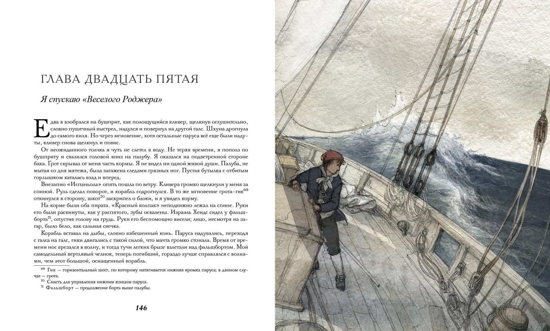 Treasure Island ir viens no slavenākajiem pirātu romāniem. Tūkstošiem gadu zēni visā pasaulē lasa savas grāmatas līdz caurumiem. Dodieties aizraujošā ceļojumā uz noslēpumainu salu kopā ar Džimu Havīnsu un viņa draugiem Dr. Livesiju, Squire Trelawney un kapteini Smollettu. Jūs gaida bīstamas tikšanās, pakaļdzīšanās un šaušana, nodevība un melnas zīmes, un, protams, dārgumi kapteinis Flint. Vidusskolas un vidusskolas vecumam.