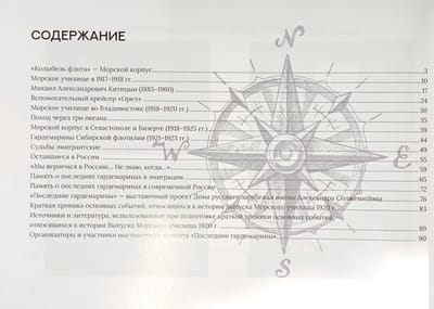 Pilnas krāsas izdevums uz krītotā papīra ir veltīts aizmirstām vai mazpazīstamām mājas jūrniecības izglītības vēstures lappusēm. Tajā stāstīts par pēdējo "Flotes šūpuļa" pastāvēšanas periodu - Pētera I dibināto Jūras korpusu, par pilsoņu kara laikā radīto jūrniecības izglītības iestāžu vēsturi un pirmajos krievu ārzemnieku pastāvēšanas gados, par tur studējušo likteni, pēc tam atradies svešā valstī, vai arī palicis mājās vai atgriezies Krievijā, kas kļuva par padomju varu.