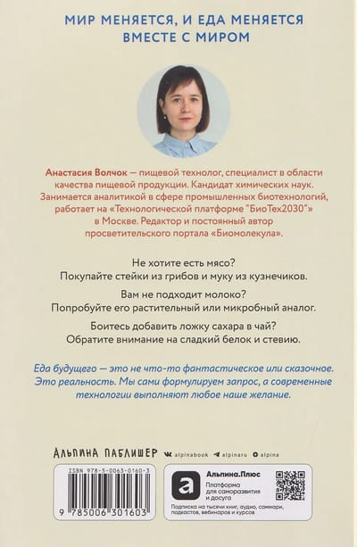 Šajā grāmatā Anastasija Volčoka, PhD, pārtikas tehnoloģe un pārtikas kvalitātes speciāliste, apspriež mūsdienu pārtikas ražošanas tehnoloģijas: gaļu un tās aizstājējus, pienu un piena produktus, augļus un dārzeņus, dzērienus, cukuru un uztura bagātinātājus. Viņa arī apspriež ģenētiskās inženierijas turpmāko attīstību, kādi jauni produkti rīt parādīsies uz mūsu galdiem un kāpēc par to nevajadzētu uztraukties.
