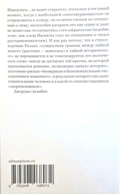 Kas ir cilvēks, un kur ir tā robeža, kur dzīvnieks kļūst par cilvēku? Savā esejā "Atklātība" (2002) itāļu filozofs Džordžo Agambens (dz. 1942) turpina savas pārdomas par tukšo dzīvību, kas iesāktas grāmatu sērijā "Homo sacer", un pēta problemātisko "un", kas savieno un šķir dzīvniekus un cilvēkus. Hēgeļa-Koževa vēstures beigu kontekstā, kad bioloģiskā dzīvība kļūst par valsts galveno rūpi — cilvēki tiek animalizēti un radības antropomorfizētas —, cilvēki paliek tie, kuriem, atšķirībā no dzīvniekiem, eksistence var tikt atklāta kā "atklāta" jeb, sengrieķu valodā, "neslēpta" (patiesība). Balstoties uz Heidegera, Īkskila un Benjamina darbiem, Agambens iesaka pievērst uzmanību šai nenotveramajai cezūrai starp cilvēku un dzīvnieku, kas atklāta Benjamina "glābtajā naktī", kas iekļūst paša cilvēka iekšienē un kļūst par atslēgu humānisma izpratnei pēc visām 20. un 21. gadsimta satricinājumiem.