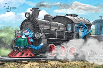 Pastkarte. Zili kaķi. Akordeonists vilcienā.
