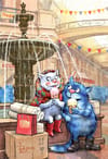 Pastkarte. Zili kaķi. Strūklaka.