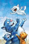 Pastkarte. Zilie kaķi. Kaķēna lidojums
