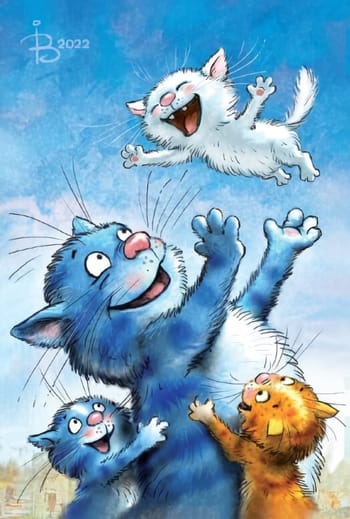 Šī skaistā un smieklīgā pastkarte ar ziliem kaķiem noteikti iepriecinās saņēmēju, jo Irinas Zenjukas ilustrācijas ir tik mīļas un rūpīgi izstrādātas.