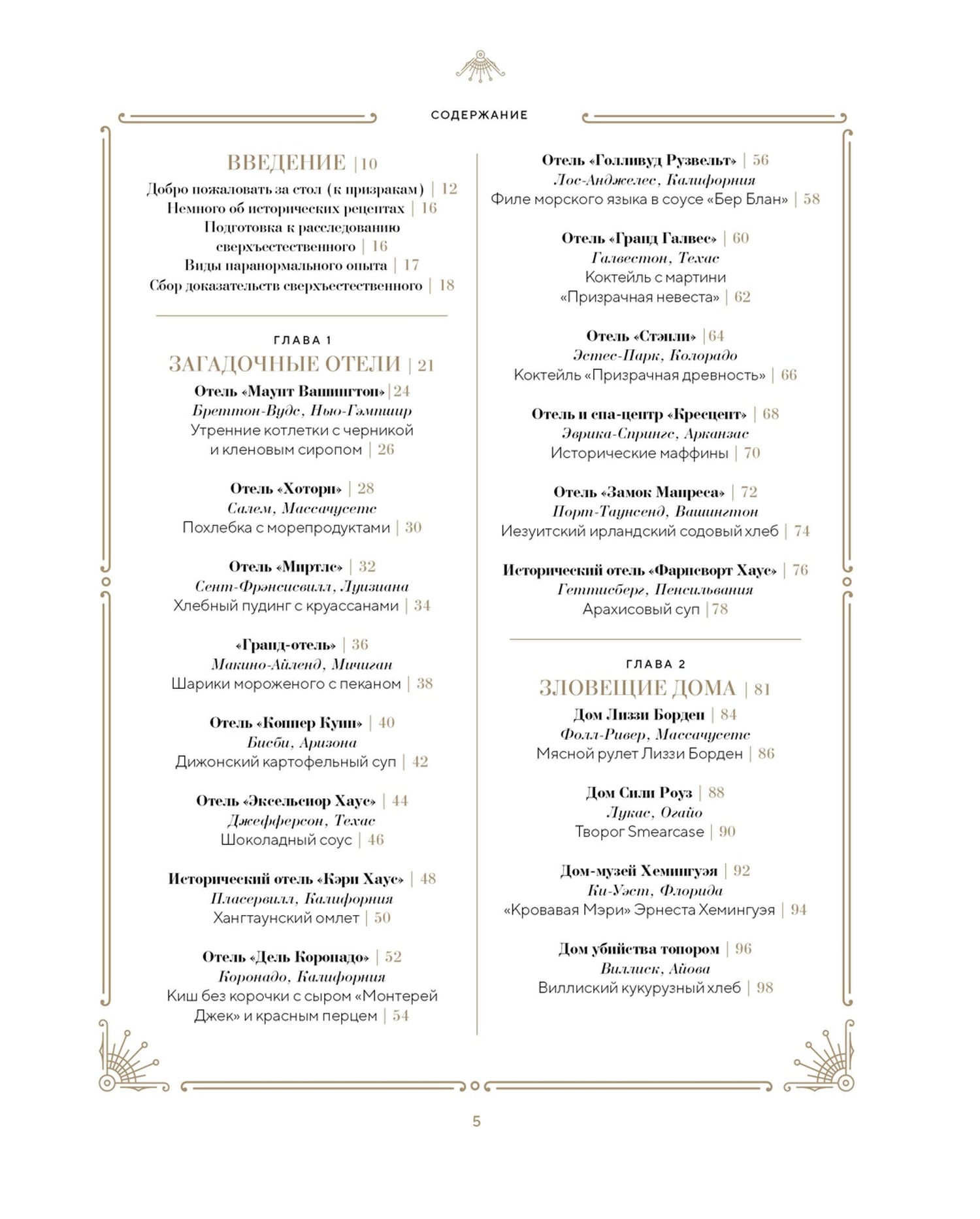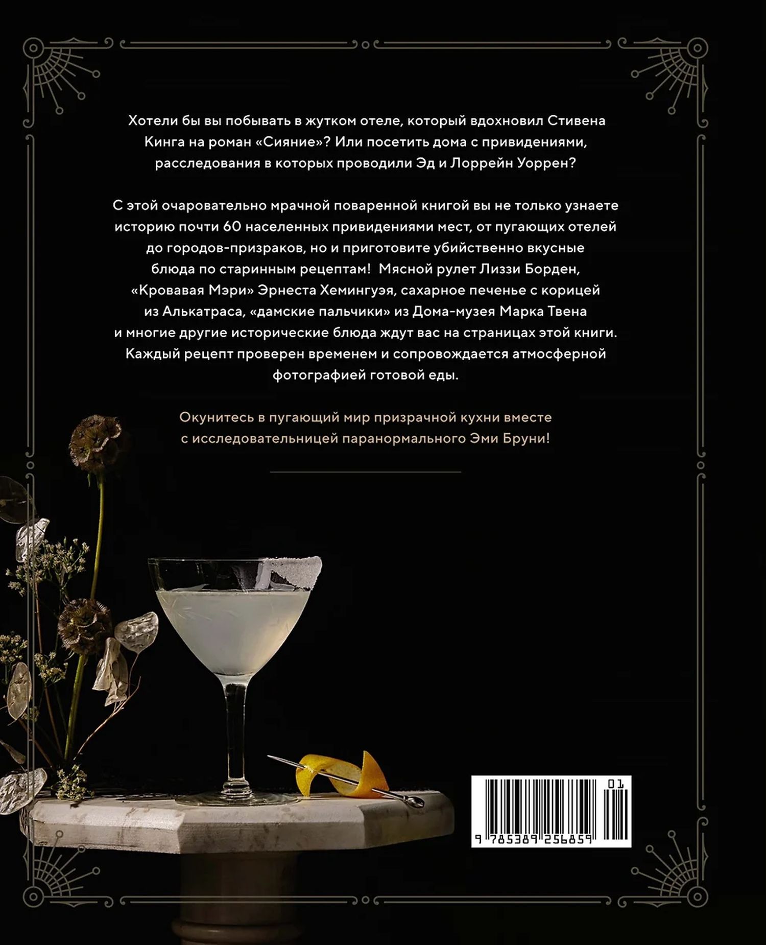 Izmantojot šo apburoši tumšo pavārgrāmatu, jūs ne tikai uzzināsit gandrīz 60 spoku vietu vēsturi, sākot no spokainām viesnīcām līdz spoku pilsētām, bet arī pagatavosiet slepkavīgus ēdienus, izmantojot vecmodīgas receptes! Šīs grāmatas lappusēs jūs gaida Lizijas Bordenas gaļas kukulis, Ernesta Hemingveja asiņainā Marija, Alcatraz kanēļa cukura cepumi, Marka Tvena mātītes un daudzi citi vēsturiski ēdieni. Katra recepte ir pārbaudīta laika gaitā, un tai ir pievienota gatavā ēdiena atmosfēras fotogrāfija.