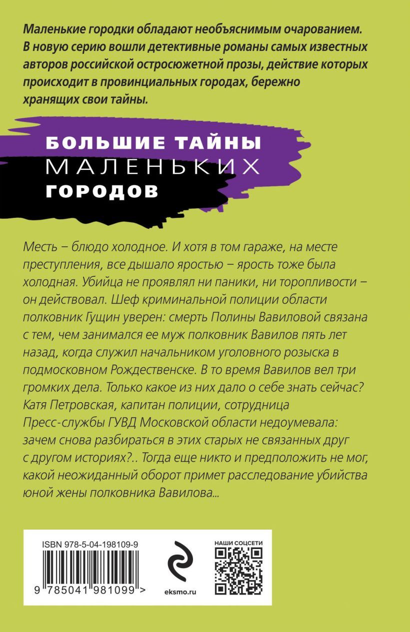Atriebība ir auksts ēdiens. Un, lai gan garāža, nozieguma vieta, bija pilna ar dusmām, arī šīs dusmas bija aukstas. Slepkava neizrādīja ne paniku, ne steigu — viņš rīkojās. Reģionālās kriminālpolicijas priekšnieks pulkvedis Guščins ir pārliecināts, ka Polinas Vavilovas nāve ir saistīta ar to, ko viņas vīrs pulkvedis Vavilovs izdarīja pirms pieciem gadiem, kad viņš bija kriminālizmeklēšanas priekšnieks Roždestvenskā, netālu no Maskavas. Tobrīd Vavilovs izmeklēja trīs skaļas lietas. Bet kura no tām tagad ir nākusi gaismā? Katja Petrovska, policijas kapteine un Maskavas apgabala Galvenās iekšlietu pārvaldes Preses dienesta darbiniece, bija neizpratnē: kāpēc gan pārskatīt šos vecos, nesaistītos stāstus? Toreiz neviens nevarēja iedomāties, kādu negaidītu pavērsienu iegūs pulkveža Vavilova jaunās sievas slepkavības izmeklēšana...