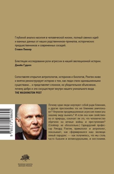 Kā tas ir iespējams, ka jūs varat ieslēgt divsimt cilvēku vienā lidmašīnā un nebaidīties no pūļa nemieriem? Homo sapiens kā suga ir apbrīnojami miermīlīga. Bet kā tad izskaidrot zvērības, spīdzināšanu, genocīdu un karus, uz kuriem cilvēki ir spējīgi? Ričards Rangams to sauc par "tikumības paradoksu". Savā grāmatā viņš apkopo bioloģisko, antropoloģisko un psiholoģisko pētījumu rezultātus, lai mēģinātu atbildēt uz jautājumu, kāpēc cilvēki parastās sociālajās attiecībās izrāda tik dīvainu pilnīgas miermīlības un gatavības nogalināt citos apstākļos kombināciju. Tradicionāli šādās diskusijās dominē divi galējie viedokļi: vai nu mēs no dabas esam labi, bet pakļauti sabiedrības kaitīgajai ietekmei, vai arī mēs no dabas esam ļauni, bet mūs ierobežo civilizētās pasaules likumi. Rangams drosmīgi dodas tur, kur pirms viņa ir bijuši tikai daži, un pierāda, ka šis strīds ir bezjēdzīgs, jo mēs esam abi.