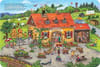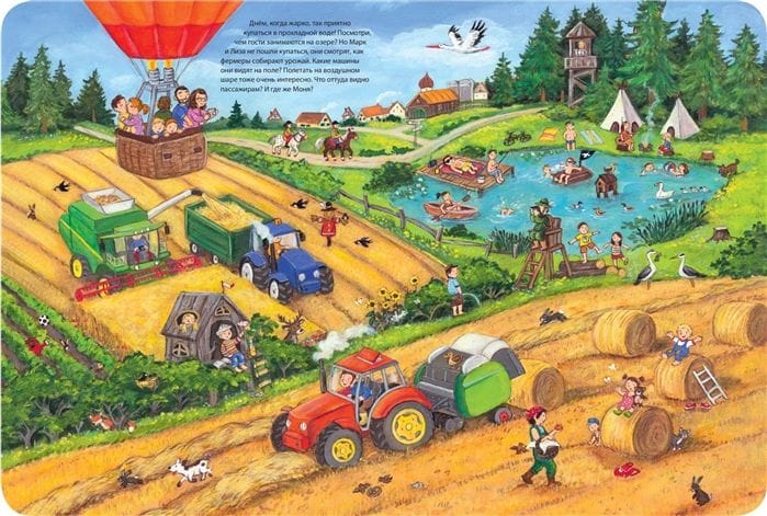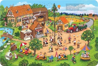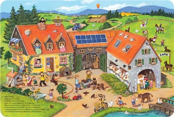 Lai vasarā saimniecībā vienmēr ir trokšņaini un jautri, jo tajā ir tik daudz viesu! Ikvienam patīk peldēties ezerā, pastaigāties dārzā un jāt ar zirgiem. Šodien saimniecībā bija ieradušies brālis un māsa Līza un Marks. Viņiem patīk palīdzēt pieaugušajiem mājas darbos, vērot, kā viņi strādā, iepirkties ciemata veikalā... Bērni paņēma līdzi savu mīļāko pelēko kaķi. Bet kur viņa slēpjas? Pasteidzies un palīdzi viņiem viņu atrast! Un tajā pašā laikā uzmanīgi aplūko, cik daudz interesantu lietu notiek saimniecībā.