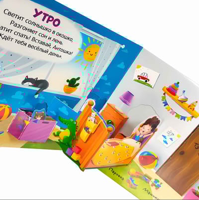 Mazuļa diena. Izbīdāma grāmata ar celiņiem, logiem un dzejoļiem.