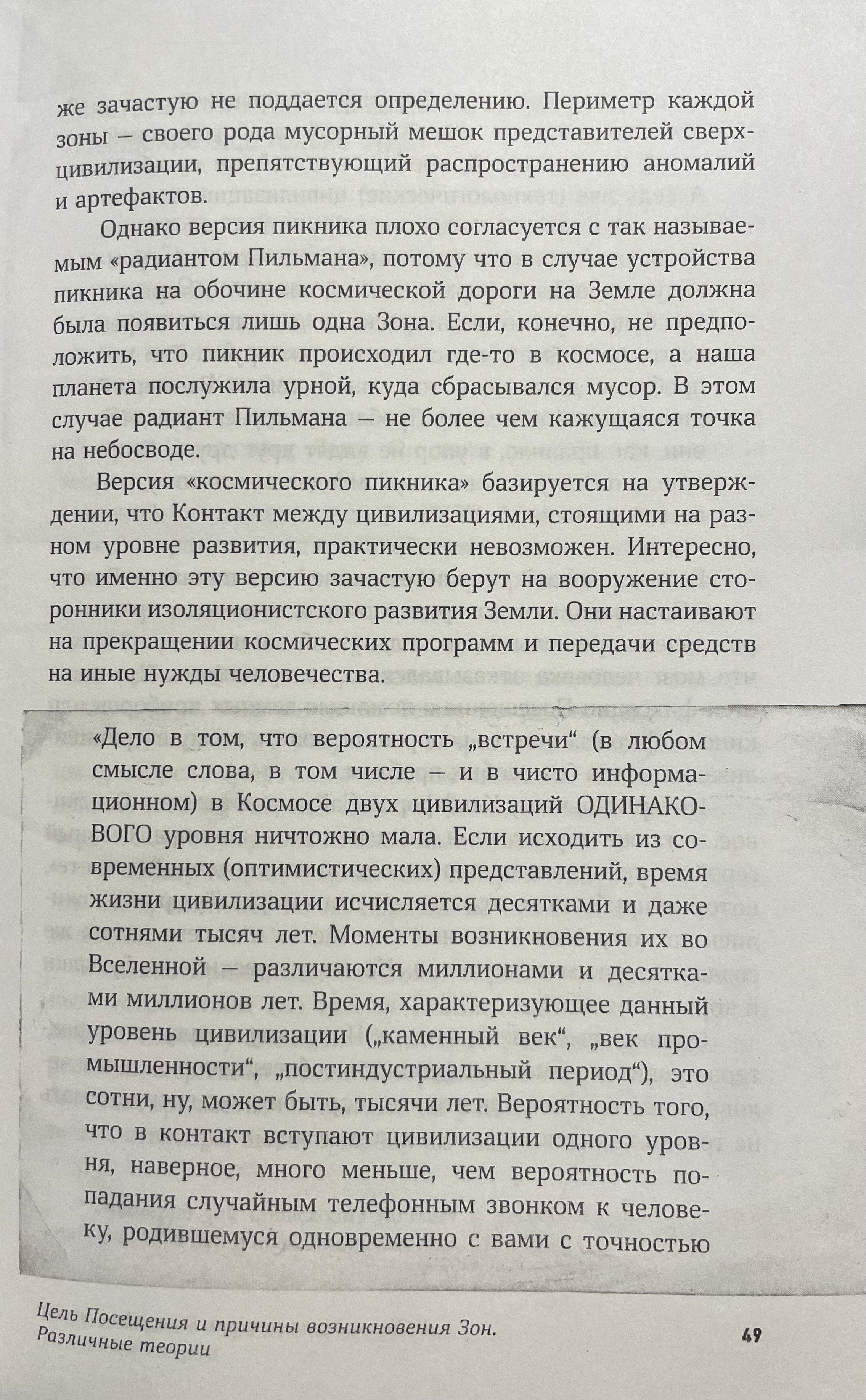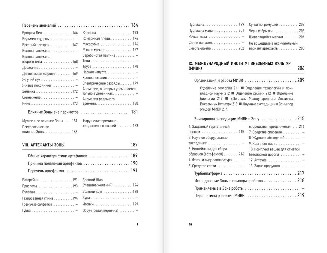 Šī enciklopēdija ir veltīta Arkādija un Borisa Strugacku noveles "Ceļmalas pikniks" detalizētai analīzei. Grāmatā iekļauti arī materiāli no autoru dienasgrāmatām un Borisa Natanoviča atbildes uz lasītāju jautājumiem no "BEZSAIŅAS intervijas". Īpaša nodaļa ir veltīta fundamentālas iespējas kontaktēties ar citu civilizāciju izpētei.