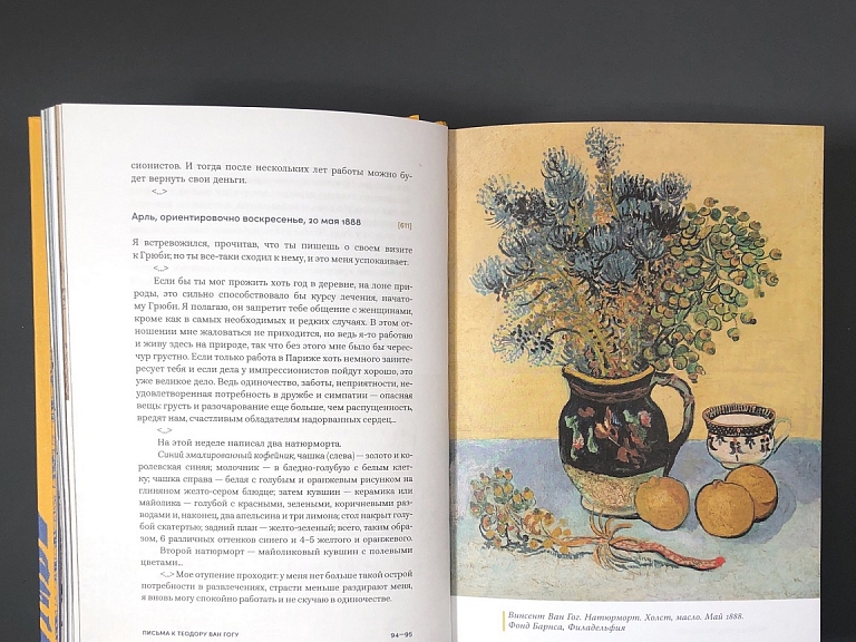 . Van Goga franču perioda epistolārais mantojums ļauj izsekot impresionistu darba metožu ietekmei uz mākslinieka daiļradi, kā arī īpatnējās krāsu simbolikas un rakstīšanas tehnikas veidošanās procesiem un izprast viņa slavenāko gleznu idejisko saturu. Grāmatas bagātīgais ilustratīvais klāsts ietver Van Goga zīmējumus un gleznas un kalpo kā metafora iekšējam dialogam, kas fiksēts viņa sarakstē ar brāli un draugiem. Tajā izmantoti arī vēstījumu saņēmēju Emīla Bernāra un Pola Gogēna darbi un franču meistaru, kas būtiski ietekmējuši mākslinieku, piemēram, Ežēna Delakruā, Žana Fransuā Milē un Ādolfa Monticelli, darbi, kā arī 19. gadsimta fotogrāfijas, kas ataino laikmeta atmosfēru.
