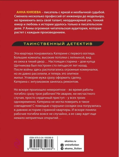 Katerinai šis dzīvoklis patika no pirmā acu uzmetiena. Lielas istabas, augsti griesti ar līstēm, skats pa logu uz klusu pagalmu... Tas bija īsts antikvariāts - tirgotāja Ščetņikova māja celta pirms simt piecdesmit gadiem. Pēc kara šeit atradās milzīgas komunālās mājas, bet tās jau sen ir pārceltas, un tagad te ir elites mājokļi. Pārliecinājusi vīru uzreiz noslēgt darījumu, Katerina ar entuziasmu sāka remontu. Taču drīz vien notika neticamais - darbu laikā uzreiz nomira trīs strādnieki! Ne negadījums, ne nelaimes gadījums, vienkārši sirdslēkme - visi trīs vienlaicīgi. Katerina nespēja noticēt šādai sakritībai! Ar kādas vecas kaimiņienes palīdzību viņa iedziļinājās dīvainā dzīvokļa senajā vēsturē. Un drīz vien saprata: strādnieki nebija miruši nejauši, un viņu pašu gaidīja vēl daudzi nepatīkami atklājumi...