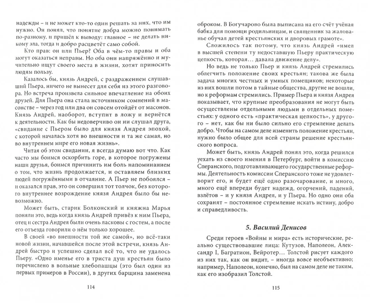 N. Dolinina grāmata „Par kara un miera lappusēm" turpina vairākus viena un tā paša autora darbus „Lasīsim Onegin kopā", „Pečorin un mūsu laiks", „Preface to Dostoevsky", kas sarakstīti pārdomu veidā kopā ar lasītāju.