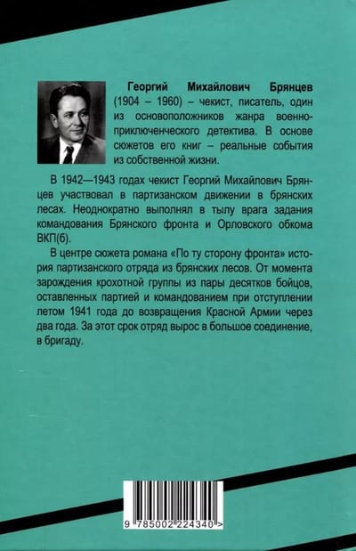 1942.-1943.gadā drošības virsnieks Georgijs Mihailovičs Brjantsevs piedalījās partizānu kustībā Brjanskas mežos. Viņš atkārtoti veica uzdevumus no Brjanskas frontes un Vissavienības boļševiku komunistiskās partijas Orjolas reģionālās komitejas pavēlniecības aiz ienaidnieka līnijām. Romāna “Frones otrā pusē” sižeta centrā ir stāsts par partizānu atdalīšanu no Brjanskas mežiem. No brīža, kad 1941. gada vasarā piedzima niecīga pāris desmitu kaujinieku grupa, ko atkāpšanās laikā pameta partija un pavēlniecība, līdz Sarkanās armijas atgriešanās divus gadus vēlāk. Šajā laika posmā daļa pārauga lielā formācijā, brigādē. Autors savu grāmatu veltīja: "biedriem kopīgā cīņā fašistu iebrucēju aizmugurē, tautas atriebējiem, Brjanskas mežu partizāniem."