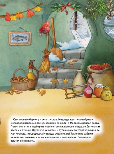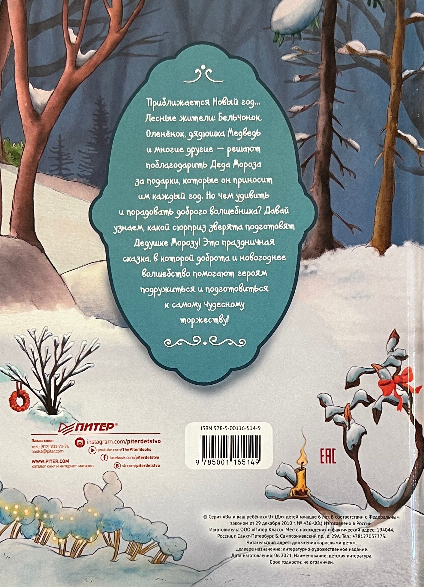 Jaungads… Meža iemītnieki - vāvere, ziemeļbriedis, tēvocis lācis un daudzi citi - nolemj pateikties Ziemassvētku vecītim par dāvanām, ko viņš katru gadu viņiem atnes. Bet ar ko pārsteigt un iepriecināt labo burvi? Uzzināsim, kādu pārsteigumu dzīvnieki sarūpēs Ziemassvētku vecītim! Šī ir svētku pasaka, kurā labestība un Jaungada burvība palīdz varoņiem sadraudzēties un sagatavoties brīnišķīgākajiem svētkiem! Pieaugušajiem lasīt bērniem.