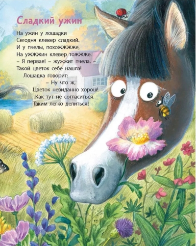 Šīs grāmatas lappusēs mīt graciozi, inteliģenti un laipni dzīvnieki — zirgi. Šeit viņi dzīvo priecīgu dzīvi: skraida pa laukiem, mielojas ar saldu zāli, uzstājas manēžā, un kumeļi pat apmeklē bērnudārzu un apgūst auļošanas nodarbības. Jūlijas Simbirskas jautrie un laipnie dzejoļi un Ļubovas Jereminas-Nošinas spilgtās ilustrācijas aizraus gan bērnus, gan viņu vecākus.