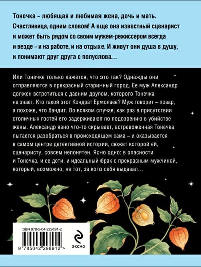 Tonečka ir mīloša un mīļota sieva, meita un māte. Veiksmīga sieviete, īsi sakot! Viņa ir arī atzīta scenāriste un var būt kopā ar savu vīru, režisoru, jebkur un visur — gan darbā, gan atvaļinājumā. Viņi dzīvo pilnīgā saskaņā, lieliski saprototies viens otru... Vai varbūt Tonečka to tikai iztēlojas? Kādu dienu viņi dodas uz skaistu, senu pilsētu. Viņas vīram Aleksandram ir jāsatiekas ar senu draugu, kuru Tonečka nepazīst. Kas ir šis Kondrāts Jermolajevs? Vīrs saka, ka viņš ir pavārs, bet izskatās pēc gangstera. Jebkurā gadījumā tieši galvaspilsētas viesu acu priekšā viņš tiek arestēts aizdomās par sievas slepkavību. Aleksandrs acīmredzami kaut ko slēpj, un satrauktā Tonečka pati cenšas saprast, kas notiek, un nonāk detektīvromāna pašā centrā, kura sižets viņai, scenāristei, ir pilnīgi nesaprotams. Viens ir skaidrs: Tonečka, viņas bērni un viņas perfektā laulība ar brīnišķīgu vīrieti, kurš, iespējams, nav tas, par ko viņš sevi uzdeva, ir apdraudēti...