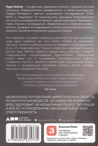 Šis pārdomātais un saistošais pētījums ļauj lasītājam iekļūt ne tikai slimnīcu palātās, stingrās režīma cietumos un tiesas zālēs. Dziļi empātisks pret saviem subjektiem, Neitans piedāvā atšķirīgu skatījumu uz cilvēkiem, kas slēpjas aiz etiķetēm "psihopāts", "sērijveida slepkava" un "seksuālais noziedznieks".