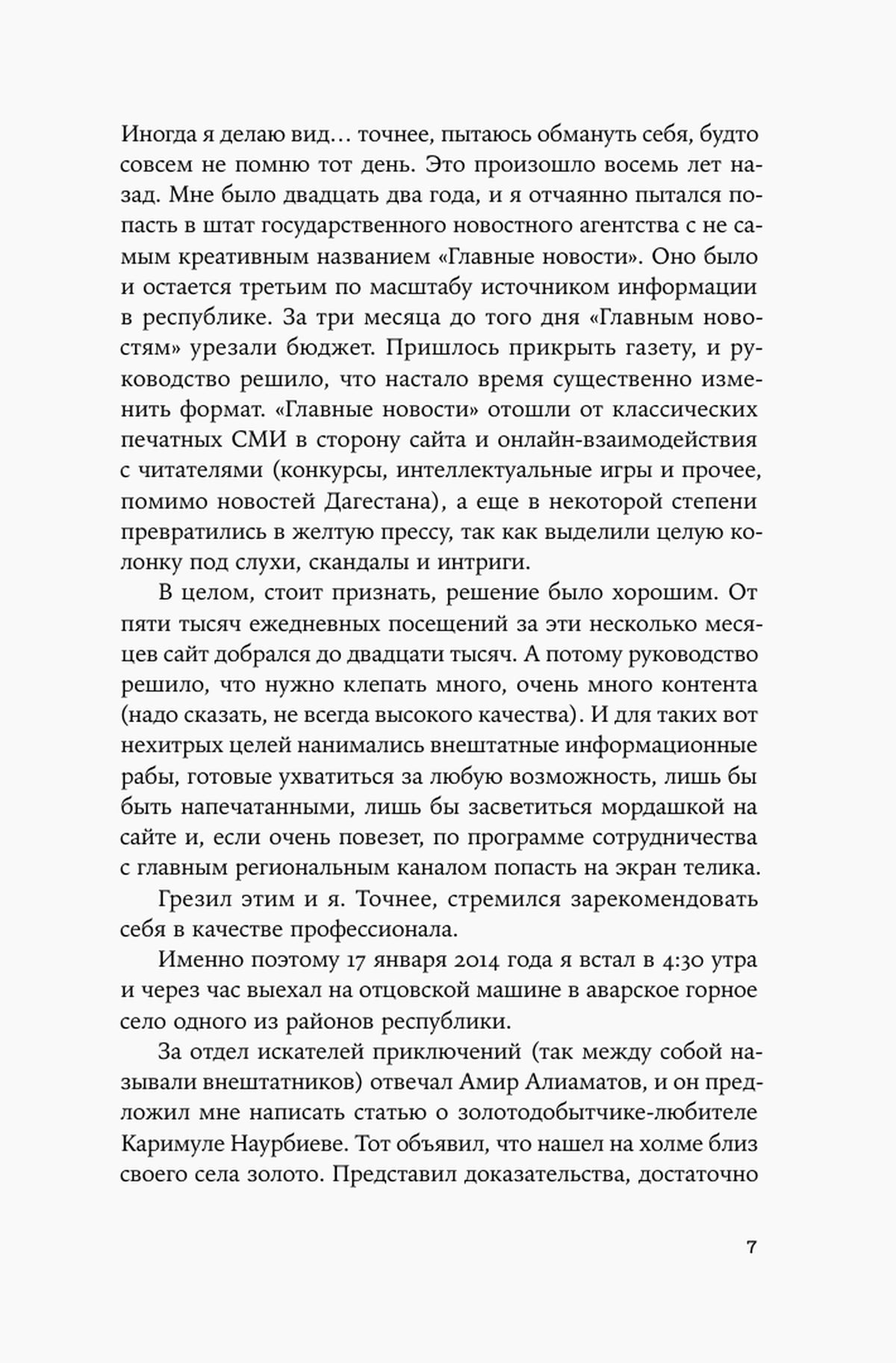Jauns žurnālists no Mahačkalas nejauši nonāk Dagestānas kalnu ciematā, kur tikko notikusi brutāla slepkavība. Sākotnēji aizrāvies ar šausminošā nozieguma izmeklēšanu, viņš arvien vairāk apzinās, cik ļoti ir iegrimis N ciemata tumšajā, aukstajā un naidīgajā atmosfērā, kas, šķiet, slēpj slepkavu.