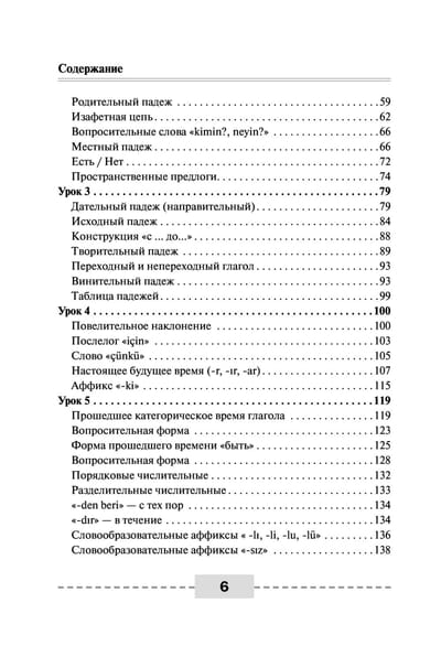 Pilns turku valodas kurss sastāv no 12 nodarbībām, kas ļauj iemācīties lasīt un rakstīt, apgūt gramatikas pamatnoteikumus, iepazīties ar runas daļu un sintakses īpatnībām, apgūt plašu vārdu un izteicienu krājumu, kā arī iemācīties runāt. Visām gramatikas tēmām ir uzdevumi praktisko iemaņu vingrināšanai. Mācību grāmatas beigās ir atslēgas, kuras var izmantot, lai pārbaudītu sevi. Grāmata ir piemērota gan patstāvīgai turku valodas apguvei, gan nodarbībām ar skolotāju. Tā var būt arī lieliska gramatikas uzziņu grāmata tiem, kuri vēlas uzlabot savas turku valodas zināšanas.