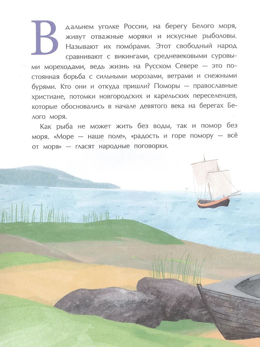 Pomorjē kuģi kuģo pa auksto Balto jūru, un Mezenas zirgi skrien pa sniegotajiem plašumiem, kā saka pomoru valoda. Un tur dzīvo neparasti cilvēki – arktisko jūru iekarotāji, seno pasaku glabātāji. Pateicoties viņu smagajam darbam, gara spēkam un neatlaidībai, viņi apguva Krievijas ziemeļus.
