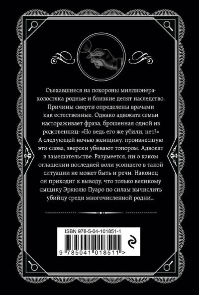 Ģimene un draugi, kas sapulcējušies uz miljonāra vecpuiša bēru ceremoniju, sadala mantojumu. Ārsti konstatē, ka nāves cēloņi ir dabiski. Tomēr ģimenes juristu satrauc kāda radinieka mestā frāze: "Bet viņš taču tika nogalināts, ne?". Nākamajā naktī sieviete, kas izteikusi šos vārdus, tiek nežēlīgi nogalināta ar cirvi. Advokāts ir neizpratnē. Protams, šādā situācijā par jebkādu mirušā pēdējās gribas izteikšanu nevar būt ne runas. Visbeidzot viņš nonāk pie secinājuma, ka slepkavu starp daudzajiem radiniekiem var identificēt tikai izcilais detektīvs Eraklijs Poiro.....
