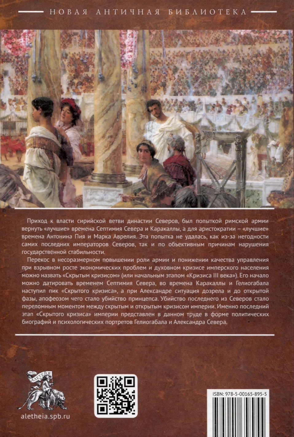 Severu dinastijas Sīrijas atzara nākšana pie varas bija Romas armijas mēģinājums atgūt Septimija Severa un Karakallas "labākos" laikus, bet aristokrātijas mēģinājums atgūt Antonīna Pija un Marka Aurēlija "labākos" laikus. Šis mēģinājums neizdevās gan pašu pēdējo Severu imperatoru nekompetences, gan objektīvu valsts stabilitātes traucējumu iemeslu dēļ. Nelīdzsvarotību starp armijas lomas nesamērīgo pieaugumu un pārvaldības kvalitātes pazemināšanos, kā arī pieaugošajām ekonomiskajām problēmām un impērijas iedzīvotāju garīgo krīzi var saukt par "slēpto krīzi" (vai "Trešā gadsimta krīzes" sākotnējo posmu). Tās sākumu var datēt ar Septimija Severa valdīšanas laiku; "slēptās krīzes" kulminācija bija Karakallas un Heliogabala valdīšanas laikā; un Aleksandra vadībā situācija nobriedās atklātā fāzē, kulminējot ar prinča slepkavību. Pēdējā Severas imperatora slepkavība iezīmēja pagrieziena punktu starp impērijas latento un atklāto krīzi. Šajā darbā tiek aplūkots impērijas "slēptās krīzes" pēdējais posms, izmantojot Heliogabala un Aleksandra Severa politiskās biogrāfijas un psiholoģiskos portretus.