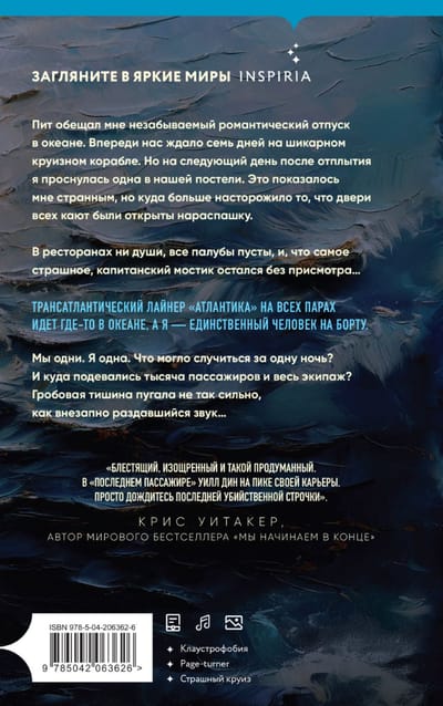 Atlantijas transatlantiskais laineris ir pilnā tvaikā kaut kur okeānā, un es esmu vienīgā persona uz kuģa. Mēs esam vieni. Es esmu viens. Kas tajā naktī varēja notikt? Un kur palika tūkstotis pasažieru un visa apkalpe? Kapu klusēšana nebija tik biedējoša kā pēkšņa skaņa